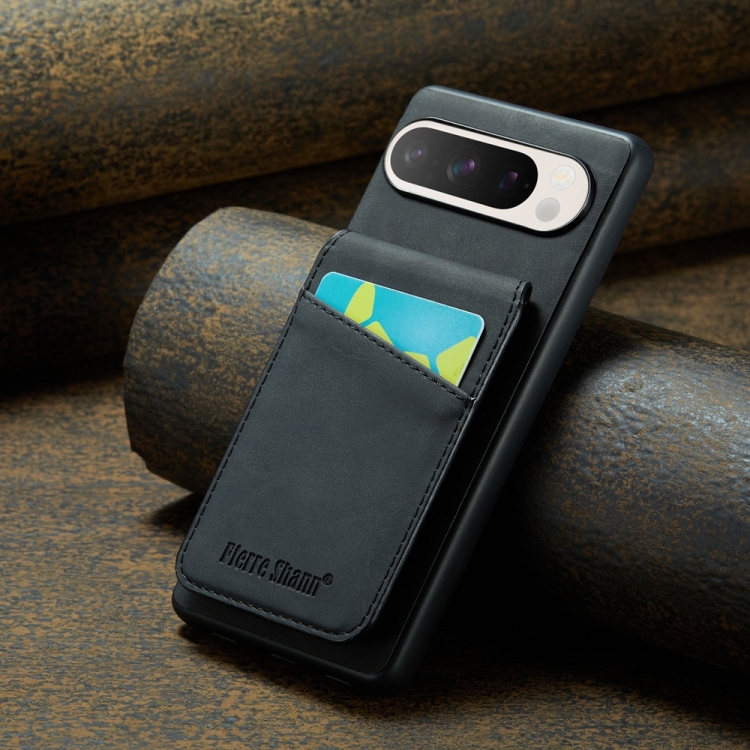 Funda Trasera PU con Tarjetero Fierre Shann Crazy Horse para Google Pixel 9 Pro XL (Negra)