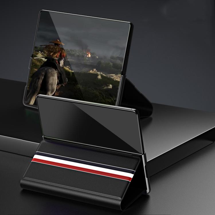 Funda trasera de PU con textura de lichi para Samsung Galaxy Z Fold7 5G con soporte (verde)