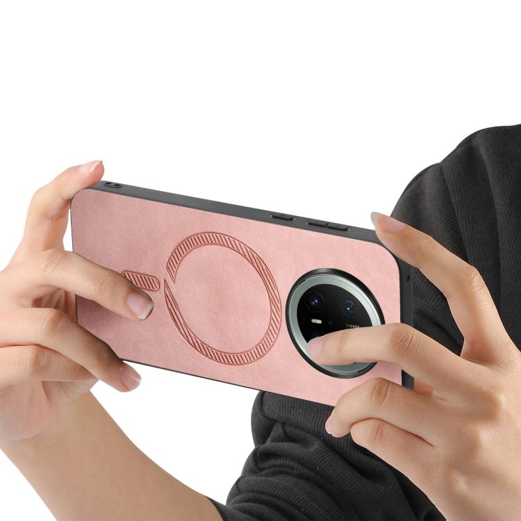 Funda Trasera PU Magsafe Huawei Mate 70 Pro (Rosa) Color Sólido Retro