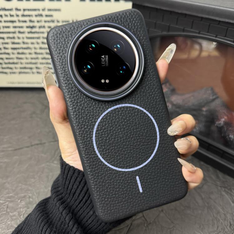 Funda ultrafina de TPU con diseño circular MagSafe y grano de lichi para Xiaomi 14 (negro y morado)