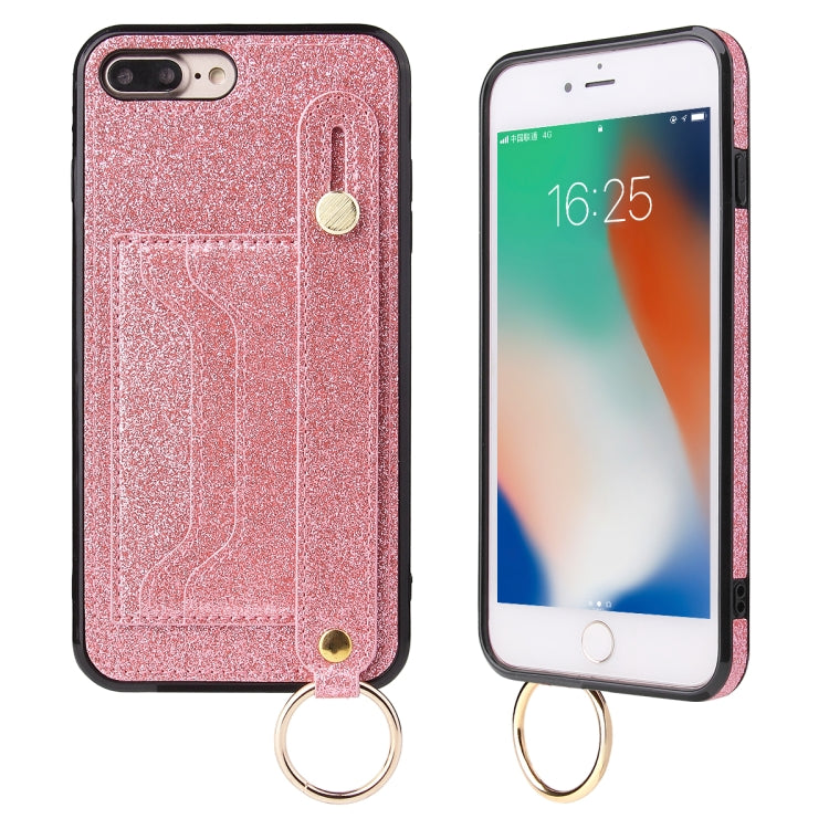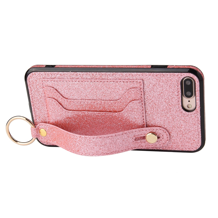 Funda Protectora iPhone 8 Plus 7 Plus Glitter Powder PU TPU Soporte Ranuras Tarjetas Correa (Rosa)
