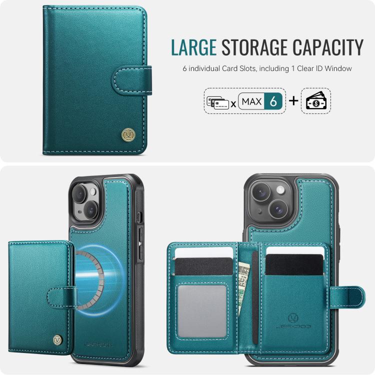 JEEHOOD J09 - Funda de cuero con hebilla para iPhone 15 Plus/14 Plus, estilo magnético, RFID, MagSafe (verde)