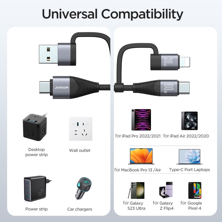 7. Diseño cuatro en uno, compatible con todos los dispositivos y adaptadores