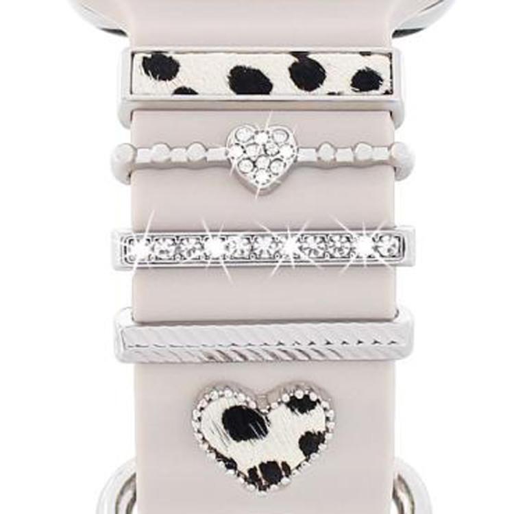 Juego de 5 correas de silicona universales para reloj inteligente, anillo decorativo de metal, estilo: plateado.