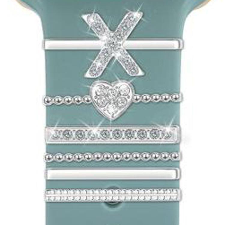 Juego de 6 correas de silicona universales para reloj inteligente, accesorios de metal decorativos, talla X (plateadas)