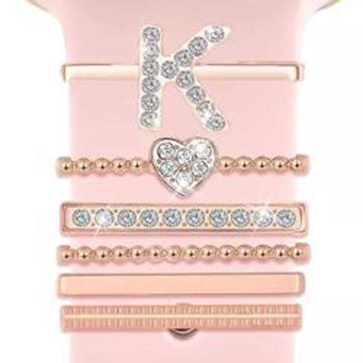 Juego de 6 correas de silicona universales para reloj inteligente, anillos decorativos de metal, talla K (oro rosa)