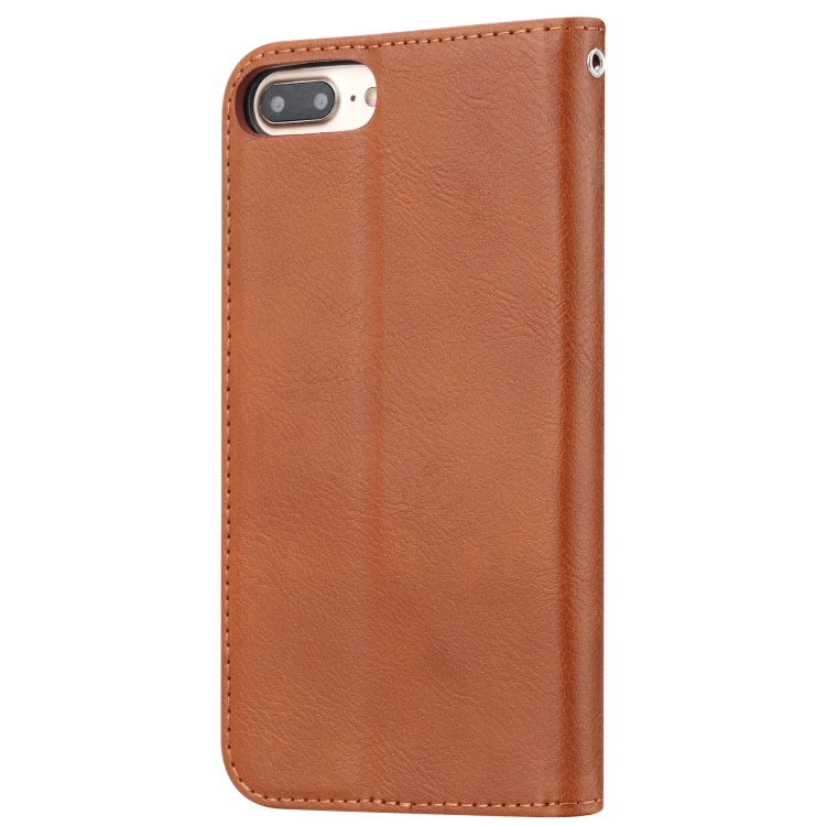 Funda de Cuero Knead Skin Texture para iPhone 6 Plus 7 Plus 8 Plus con Tapa Horizontal Marco Fotos Soporte Ranuras Tarjetas Billetera (Marrón)