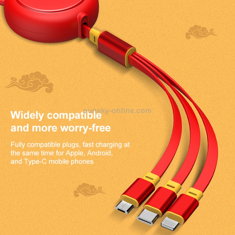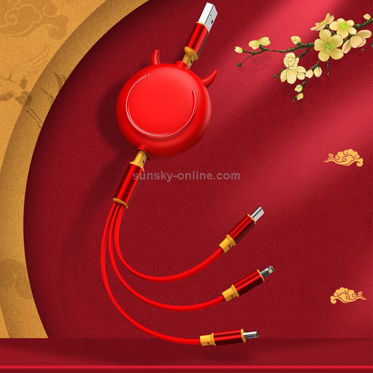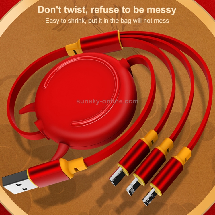 Cable 3 en 1 Ko42 USB A 8 Pin + USB-C + Micro USB Retráctil 1,2M 3A