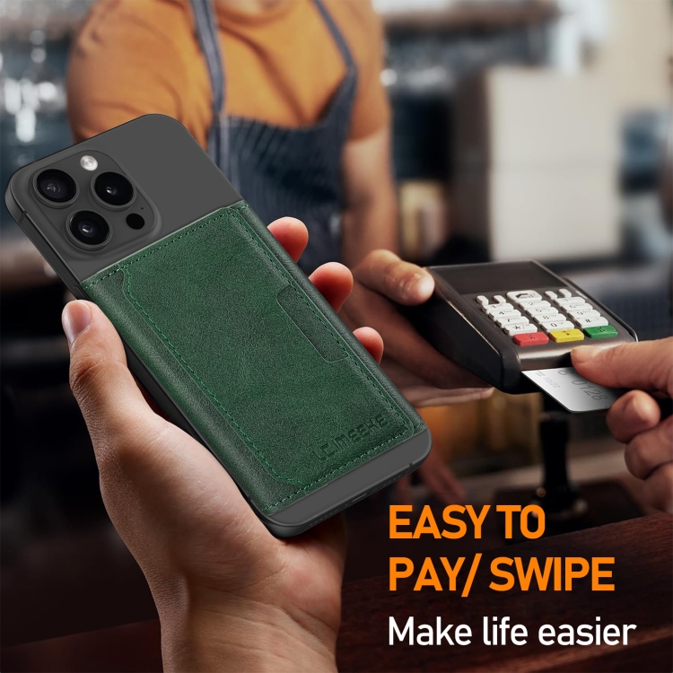 Funda de cuero Lc.Imeeke con protección RFID para 5 tarjetas Magsafe (Verde)