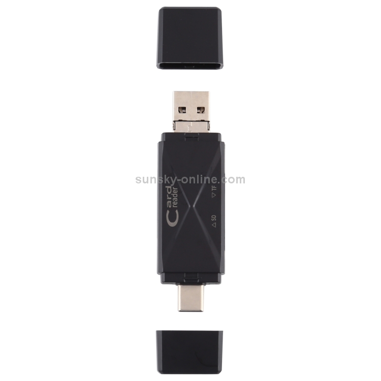 - 1x Lector de Tarjetas USB-C Type-C + SD + TF + Micro USB a USB 2.0 (Negro)