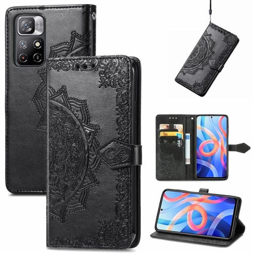Mandala Flower Funda de Cuero con Goma En Relieve para Xiaomi Redmi Note 11 (Negro)