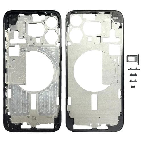- 1x Marco Central, Teclas Laterales y Bandeja para Tarjetas para Apple iPhone 15 Pro Max, Versión CE/UE (Negro)