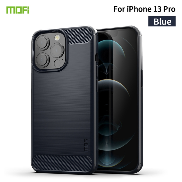 Funda para iPhone 13 Pro Mofi Gentleness Series Textura Cepillada Fibra de Carbono Soft TPU (Azul)