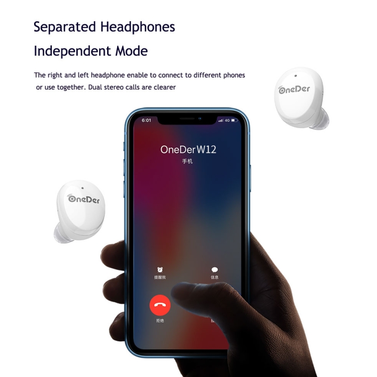 Auricular Inalámbrico Oneder W12 Con IPX5 HD Sonido Estéreo TWS Bluetooth (Blanco)