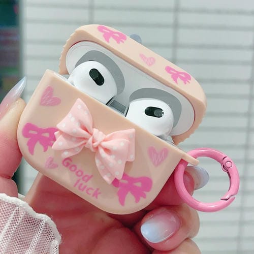 Funda Protectora Para AirPods 3 Auriculares Bluetooth Con Lazo De Lunares 3D (Rosa)