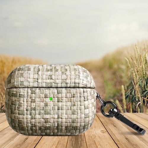 Estuche Protector para AirPods Pro 2 Weave Texture PU A Prueba de Golpes con Gancho (Gris Verde)