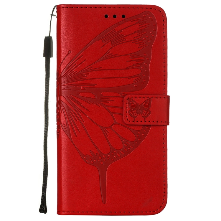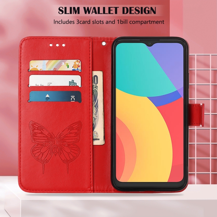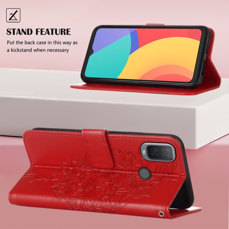 Funda de Cuero para Alcatel 1L 2021 con Mariposa en Relieve (Rojo)