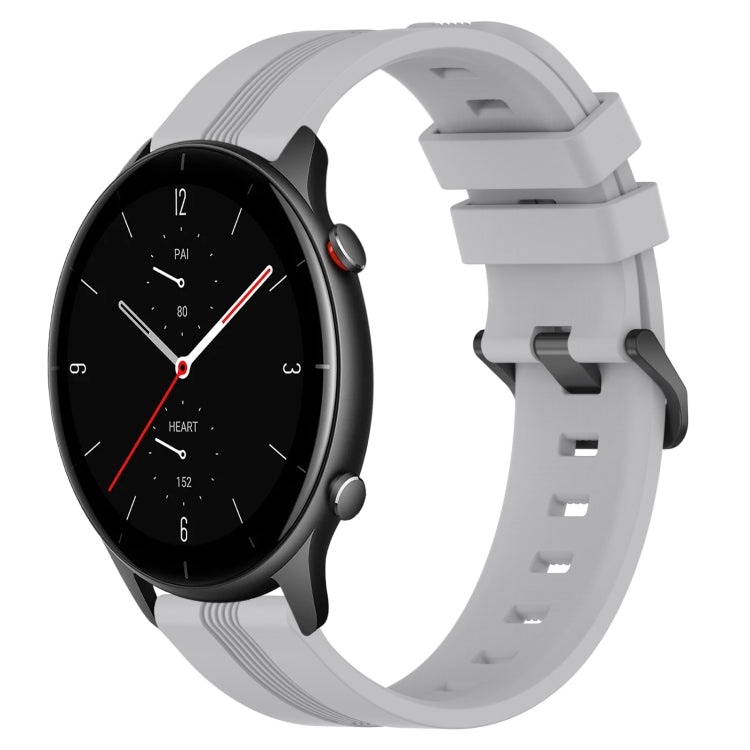 Banda de Reloj de Silicona para Amazfit GTR 2E 22mm con Rayas Cóncavas (Gris)