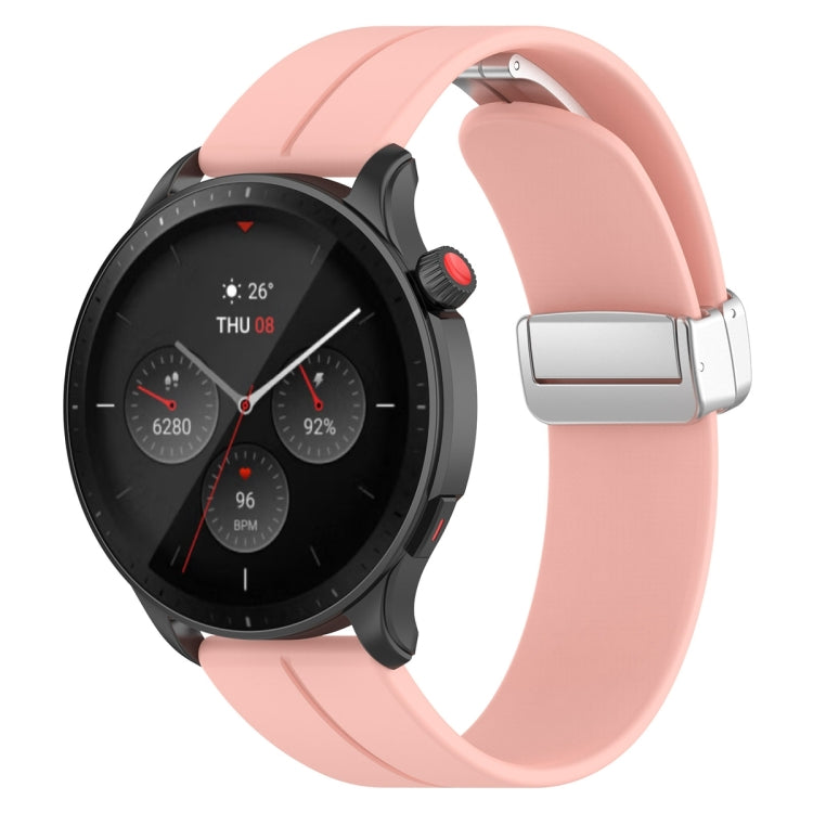 Correa de Silicona para Amazfit GTR 4 con Cierre Plegable Magnético y Hebilla Plateada (Rosa Claro)