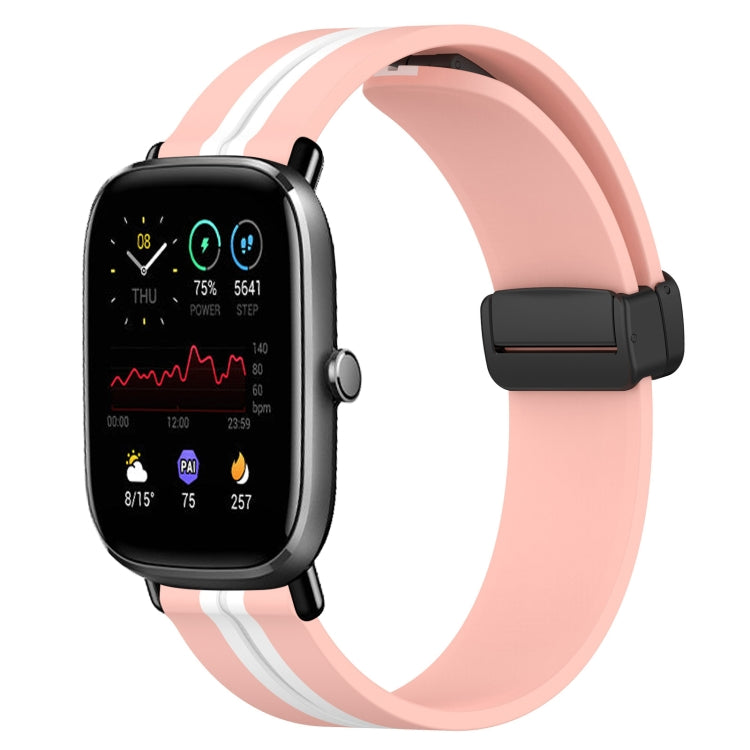 Correa de Reloj para Amazfit GTS 2 Mini 20mm Silicona con Cierre Magnético Plegable (Rosa + Blanco)