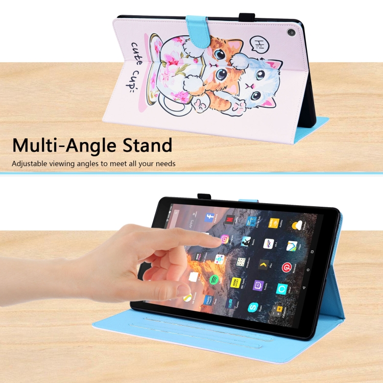 Funda de Cuero Amazon Fire HD 10 (2019) Patrón Animal Horizontal Flip con Titular y Tarjetero (Cat Brothers)