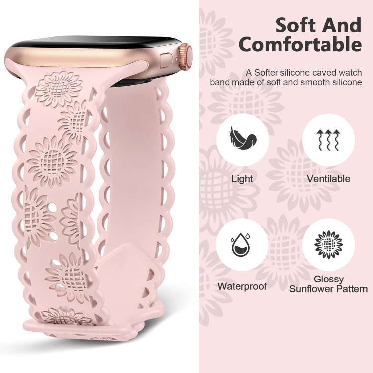 Correa de Silicona para Apple Watch SE 2022 44mm con Relieve de Girasol (Rosa)