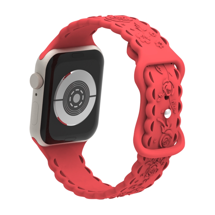 Correa de Silicona para Apple Watch Se 2022 con Relieve de Rosa 3D y Encaje de 40mm (Rojo)
