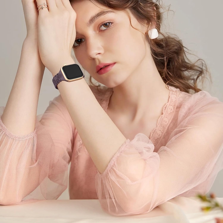 Correa de Silicona Apple Watch Se 2023 44mm con Relieve de Girasol y Encaje (Púrpura Oscuro)