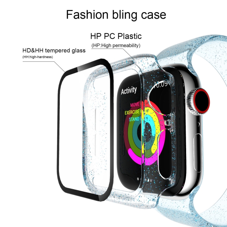 Funda para Apple Watch Series 6, SE, 5 y 4 44mm Glitter Powder PC con Estuche y Vidrio Templado (Azul)