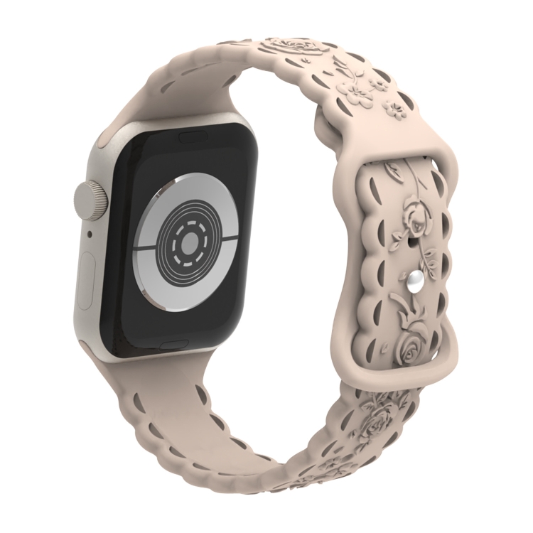 Correa de Silicona para Apple Watch Series 7 45mm con Relieve de Rosa 3D (Té con Leche)
