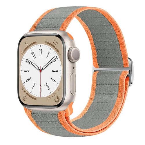 For Apple Watch Series 8 45mm Nylon Elastic Buckle Watch Band (Gray Orange)