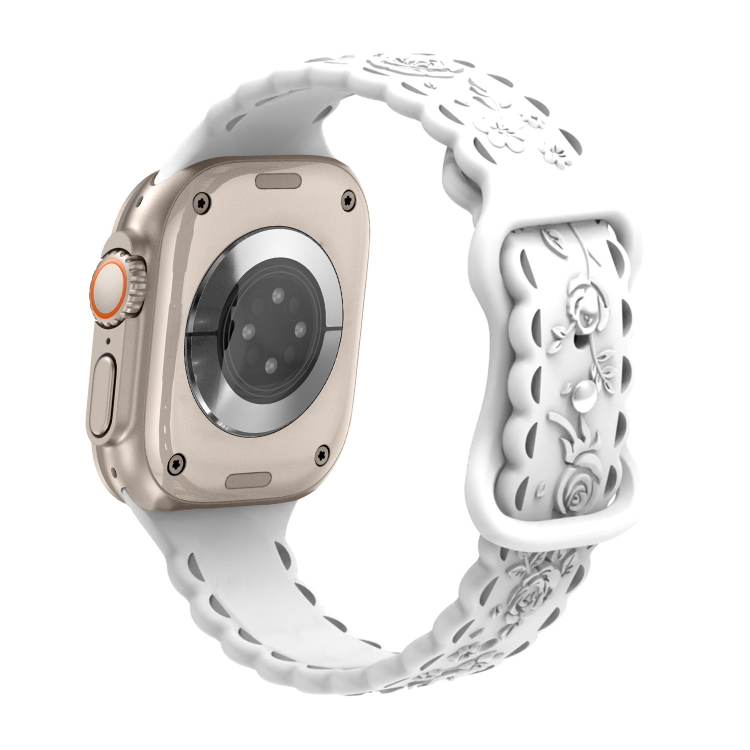 Correa de Silicona para Apple Watch Ultra 2 con Relieve de Rosa 3D y Encaje de 49mm (Blanco)