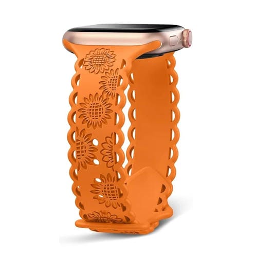 Correa de Silicona para Apple Watch Ultra 49mm con Relieve de Girasol y Encaje (Naranja)