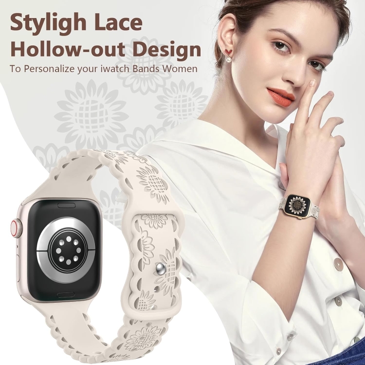 Correa de Silicona para Apple Watch Ultra 49mm con Relieve de Girasol y Encaje (Starlight)