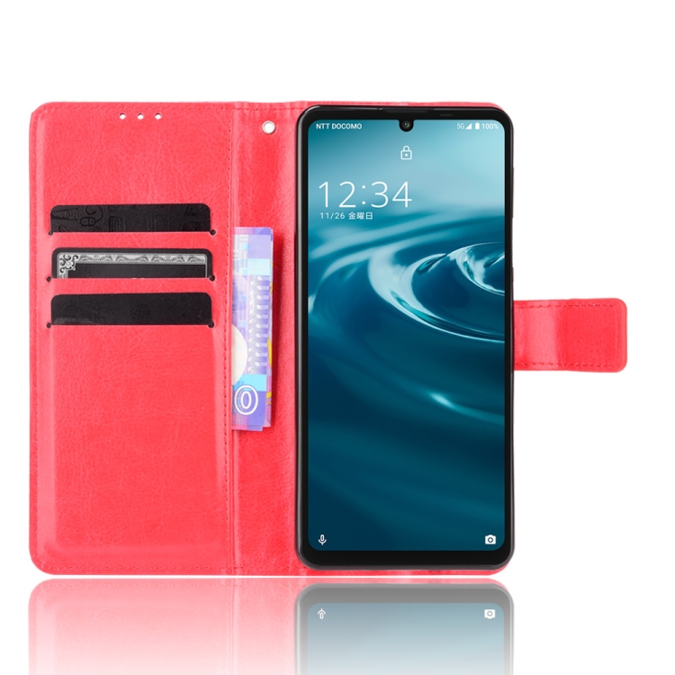 Funda de Cuero para Aquos Sense6 Crazy Horse Texture Horizontal Flip con Soporte y Ranuras para Tarjetas (Rojo)