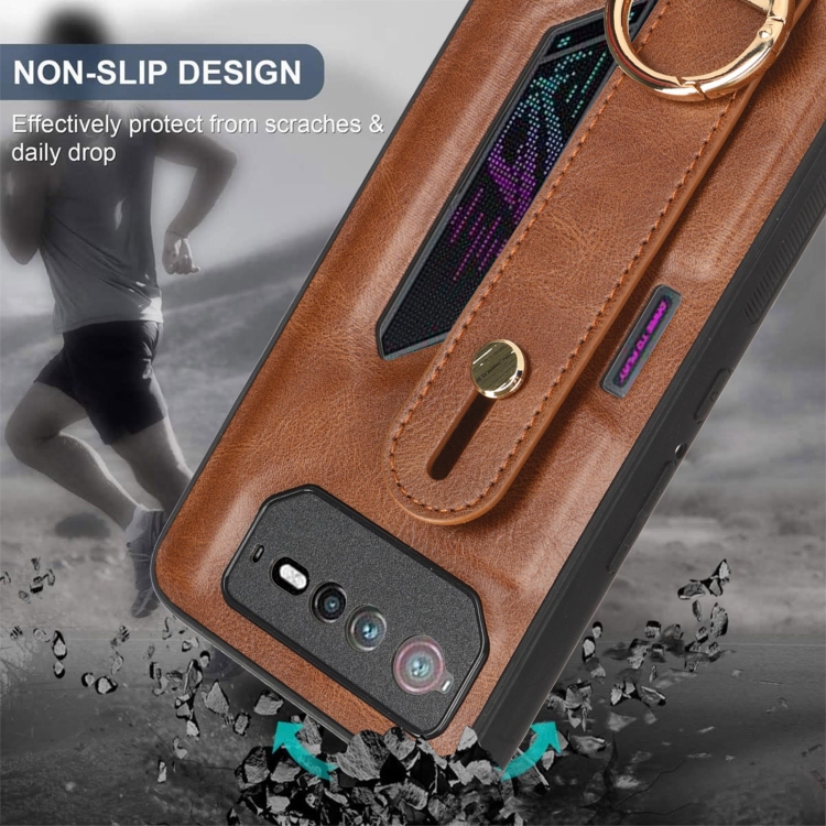 Funda Trasera Muñequera de Cuero para Asus Rog Phone 6 / Rog6 (Marrón)