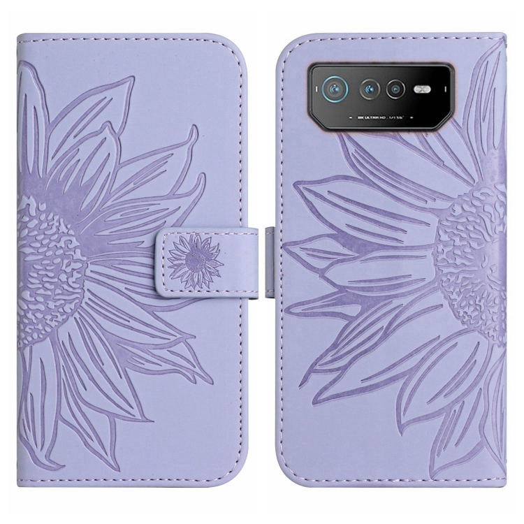 Funda Flip de Cuero para Asus Rog Phone 6 con Cordón y Skin Feel Sun Flower Pattern (Púrpura)