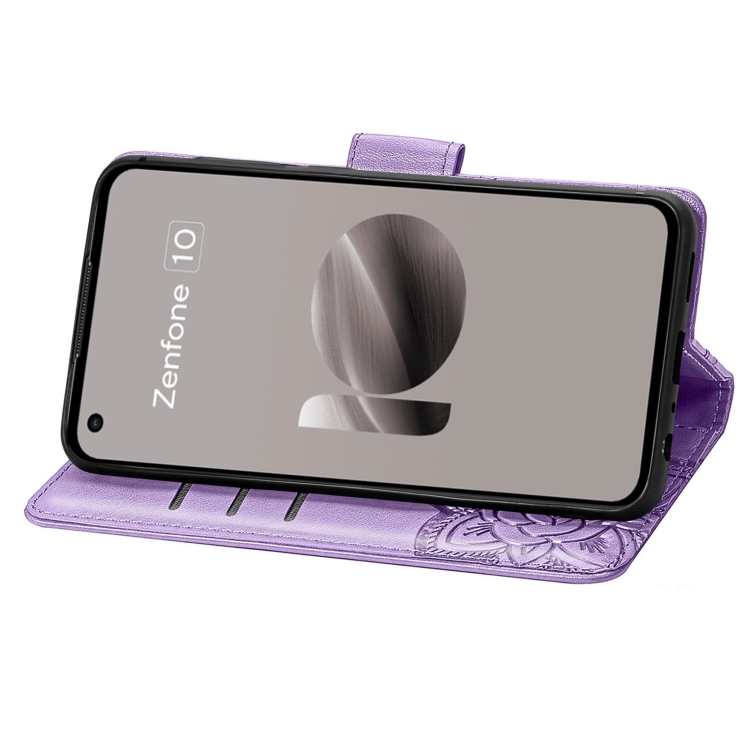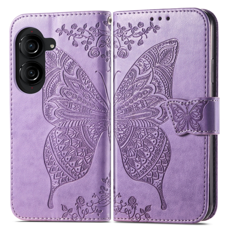Funda para Asus Zenfone 10 de Cuero con Relieve Flor de Amor y Mariposa (Lavanda)