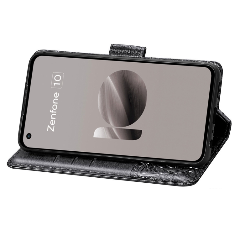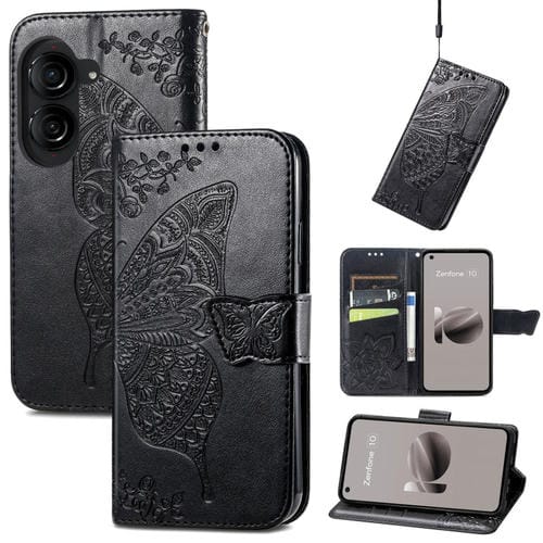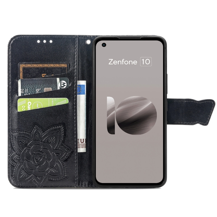 Funda para Asus Zenfone 10 de Cuero con Relieve Flor y Mariposa (Negro)