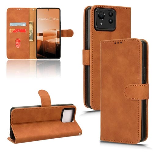 Funda para Asus Zenfone 11 Ultra Skin Feel de Cuero con Tapa Magnética (Marrón)
