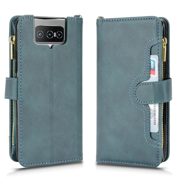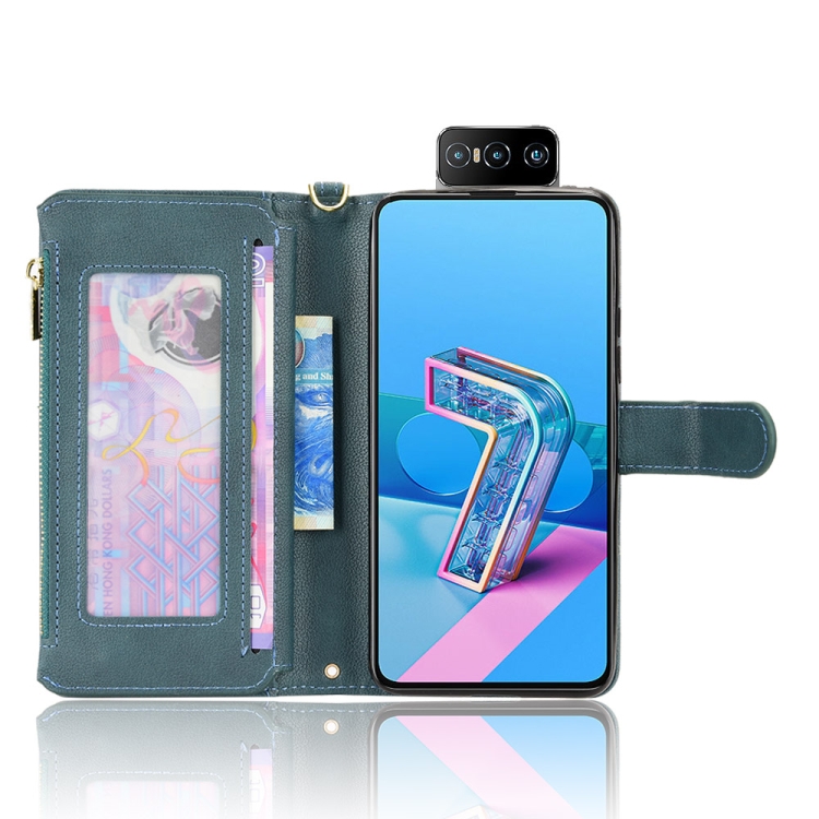 Funda de Cuero para Asus Zenfone 7 Pro Zs671Ks con Litchi Textura y Cremallera (Azul)