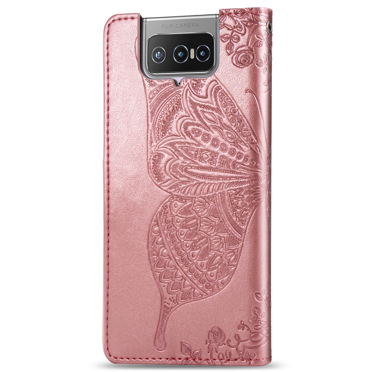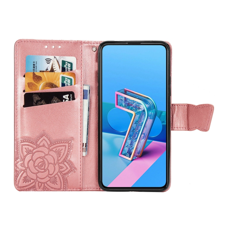 Funda de Cuero para Asus Zenfone 7 Zs670Ks con Tapa Horizontal, Soporte, Ranura para Tarjeta y Cordón (Oro Rosa)