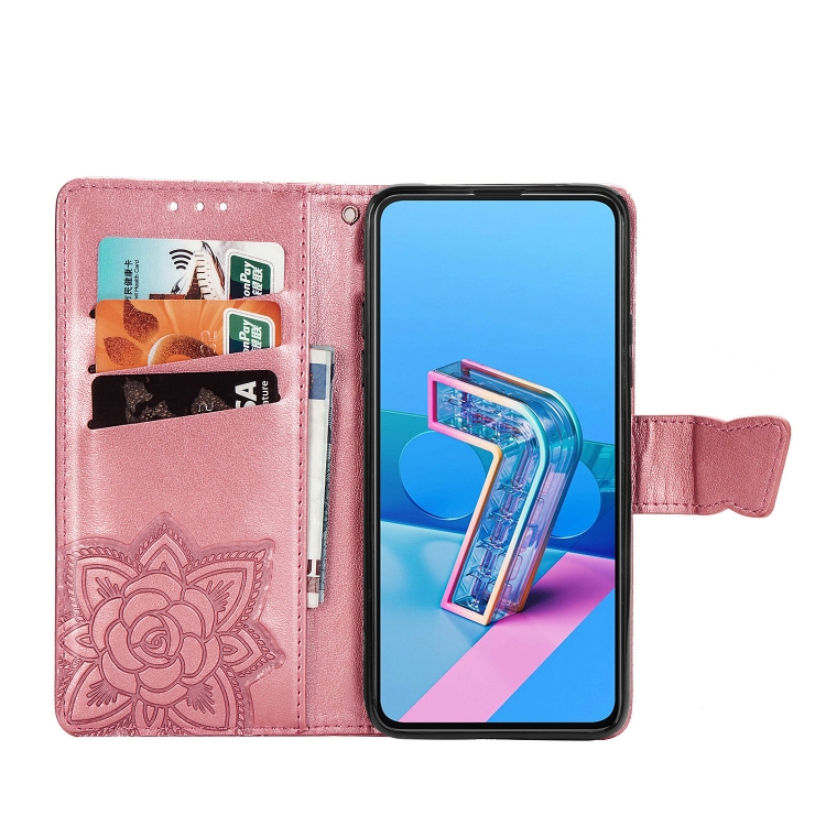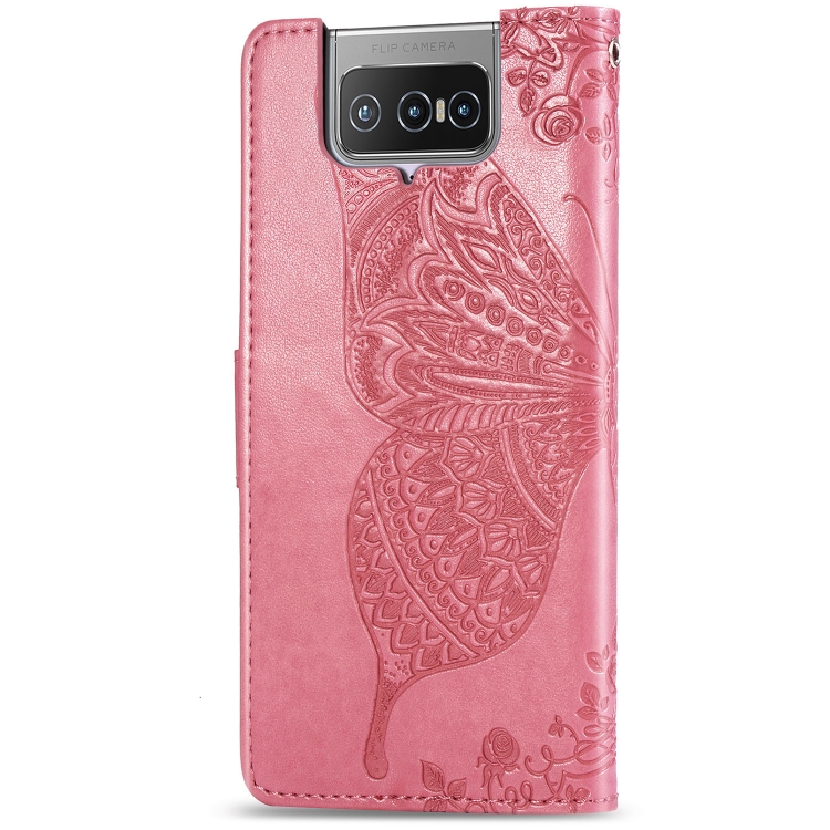 Funda de Cuero para Asus Zenfone 7 Zs670Ks Butterfly con Tapa Horizontal, Soporte y Ranura para Tarjeta (Rosa)
