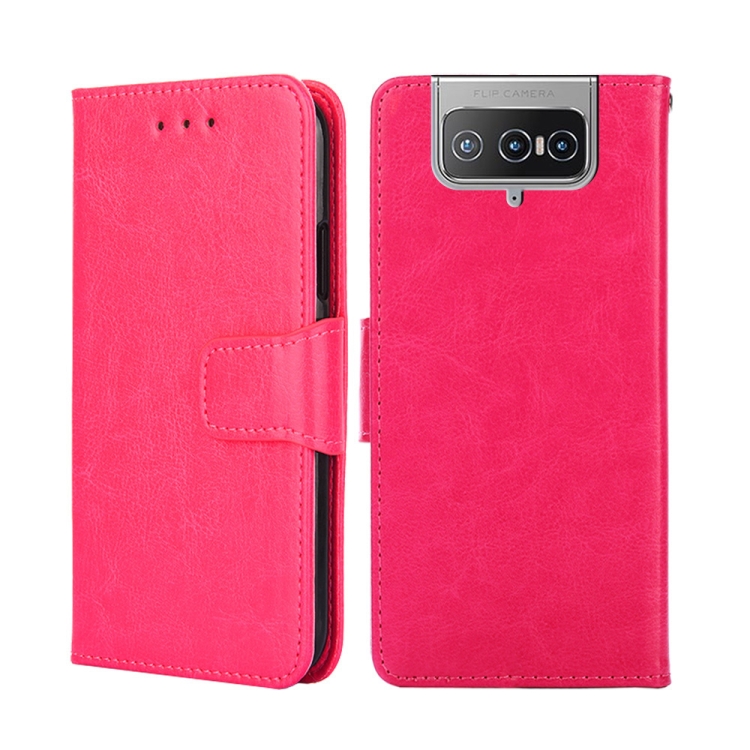 Funda de Cuero para Asus Zenfone 8 con Textura de Cristal y Flip (Rose Rojo)