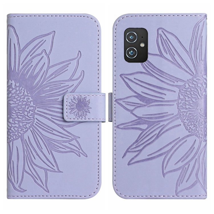 Funda de Cuero Flip para Asus Zenfone 8 Zs590Ks con Cordón y Diseño Sun Flower (Púrpura)