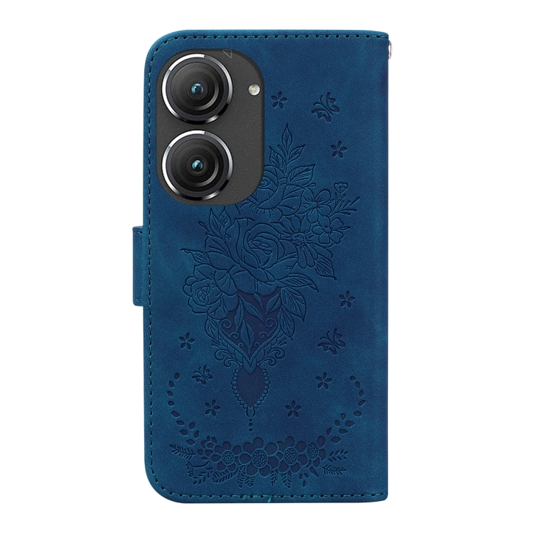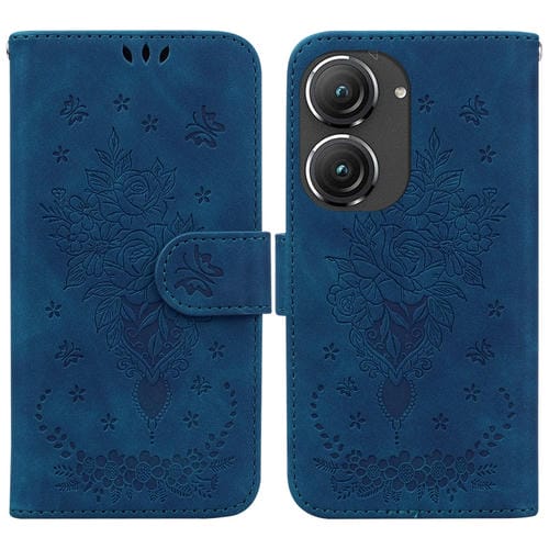 Funda para Asus Zenfone 9 Butterfly Rose Caja de Cuero en Relieve (Azul)