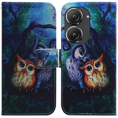 Funda de Cuero para Asus Zenfone 9 con Dibujo Coloreado Búho de Pintura al Óleo