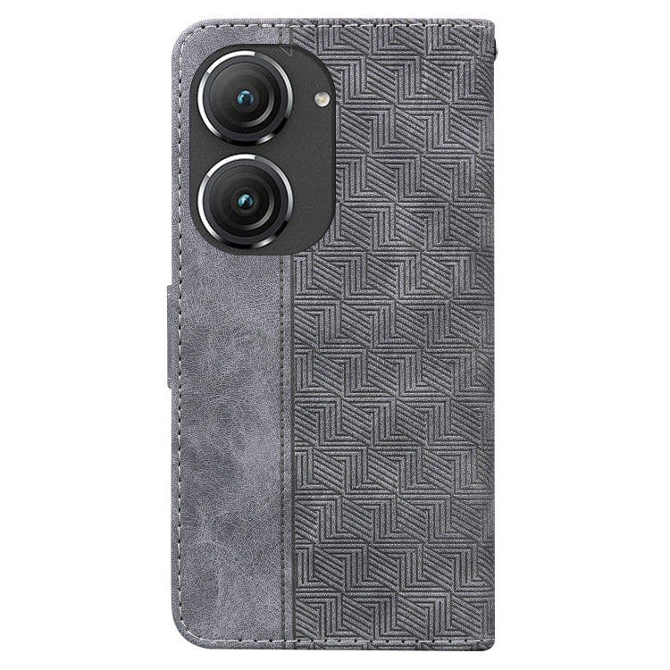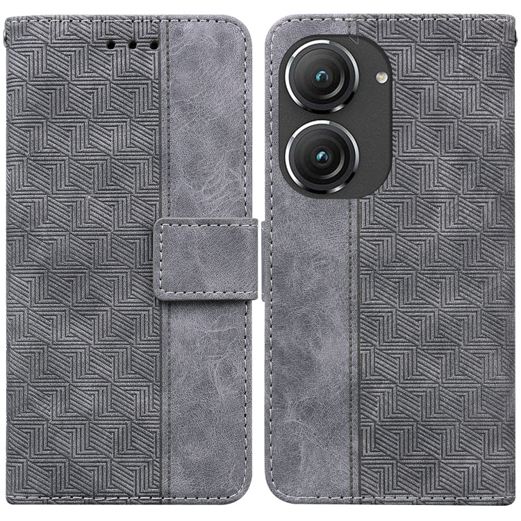 Estuche de Cuero para Asus Zenfone 9 con Tapa en Relieve Geométrico (Gris)