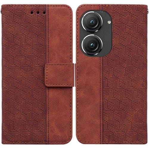 Estuche de Cuero para Asus Zenfone 9 con Tapa en Relieve Geométrico (Marrón)