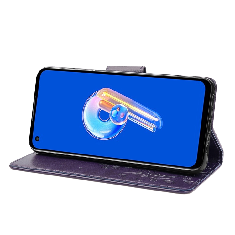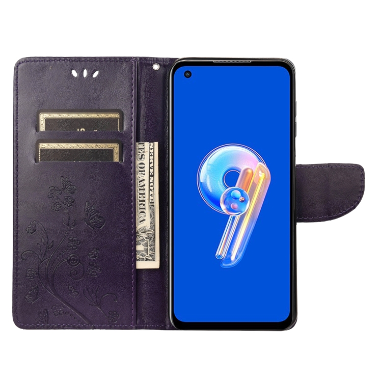 Funda Flip de Cuero para Asus Zenfone 9 con Patrón de Flor y Mariposa (Púrpura Oscuro)